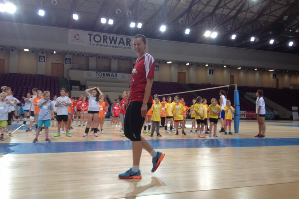 W środę w Ergo Arenie razem z naszym reprezentantem, który udział w treningach łączy z przygotowaniami w kadrze Polski do nadchodzących mistrzostw świata, uczestniczyło 120 dzieci. Dzisiaj, w czwartek, podobna grupa młodych siatkarzy, w wieku 9-13 lat, zameldowała się na zajęciach w hali SOC Torwar w Warszawie. Tu, obok Marcina Możdżonka i jego klubowego kolegi - atakującego reprezentacji Polski - Grzegorza Boćka, trening poprowadziła Katarzyna Gajgał – Anioł.
