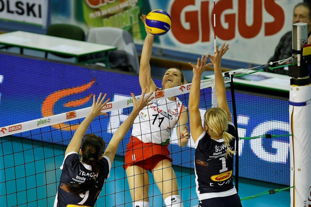 Trzecią partię z wysokiego "c" rozpoczęły podopieczne Wiesława Popika. Mocniejsza zagrywka i większa skuteczność w ataku dała im prowadzenie (13:8) i (16:8). Łodzianki jednak nie złożyły broni. Świetne zagrywki Natali Nuszel sprawiły, że traciły do rywalek zaledwie trzy punkty (15:18). W końcówce pilanki wyprowadziły kilka udanych akcji, dzięki czemu zwyciężyć do 18.