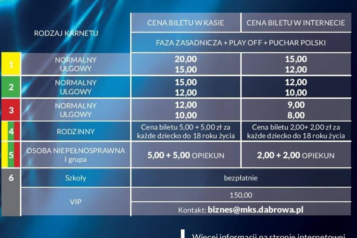 UWAGA! Można jeszcze nabywać karnety na sezon 2017/2018. Cennik dostępny: http://www.mks.dabrowa.pl/karnety.html