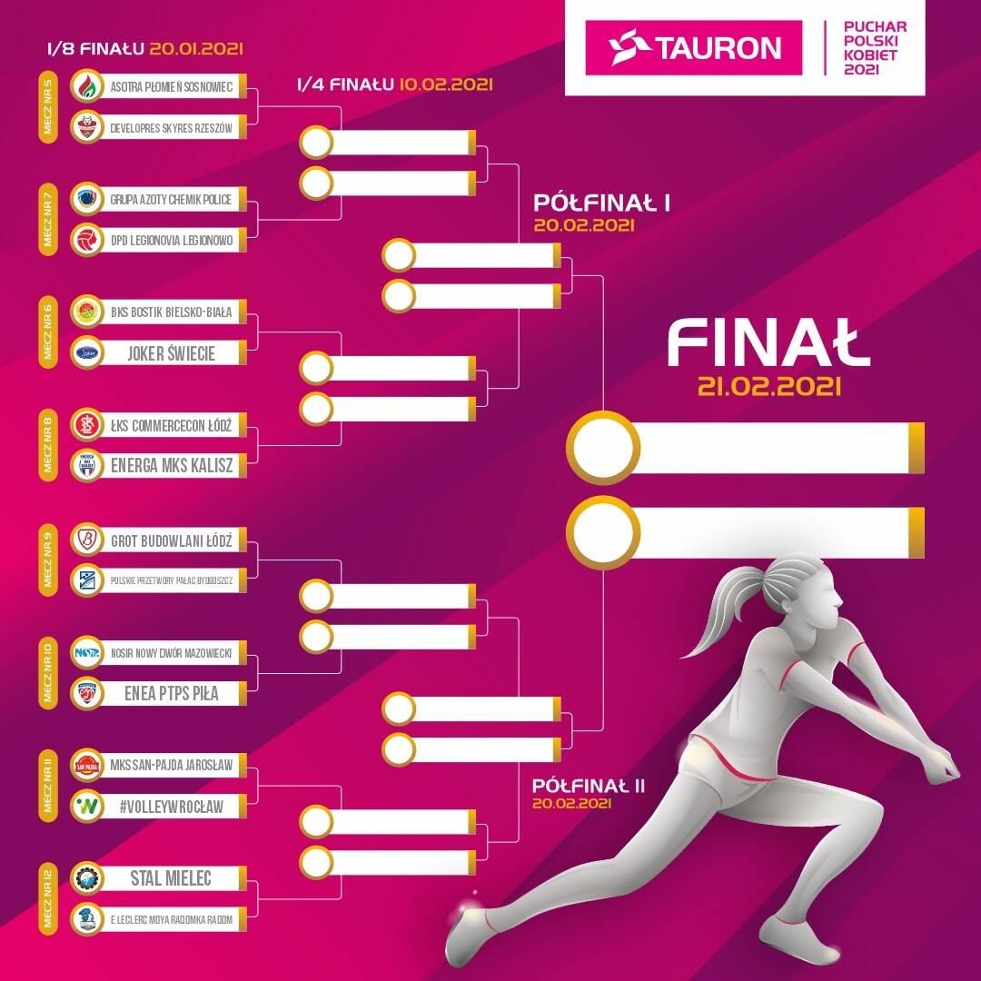 W roli osób losujących wystąpiły Marta Ćwiertniewicz oraz Joanna Kaczor-Bednarska. Przypomnijmy, że według regulaminu losowania, cztery pierwsze drużyny TAURON Ligi po zakończeniu 1. rundy fazy zasadniczej sezonu 2020/2021 (czyli po jedenastu kolejkach) zostały rozstawione zgodnie z diagramem rozgrywek, czyli w praktyce mogą się spotkać dopiero w turnieju finałowym w Nysie. Rozstawione zostały Developres SkyRes Rzeszów, E.LECLERC MOYA Radomka Radom, Grot Budowlani Łódź oraz ŁKS Commercecon Łódź.